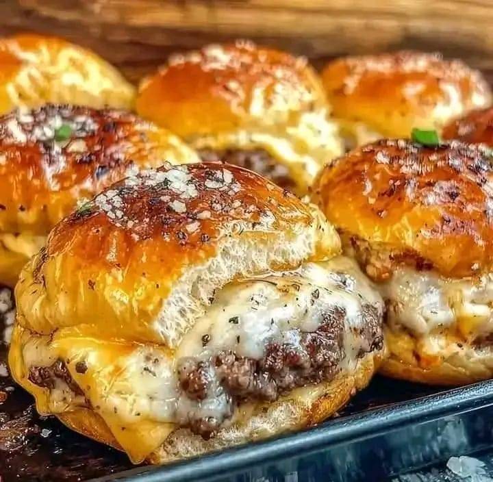 Coupez les petits pains ou les petits pains en deux (en les gardant attachés si possible). Déposez un peu de garniture refroidie sur la moitié inférieure. Saupoudrez de fromage râpé sur la garniture, puis remettez la moitié supérieure du pain et appuyez doucement.