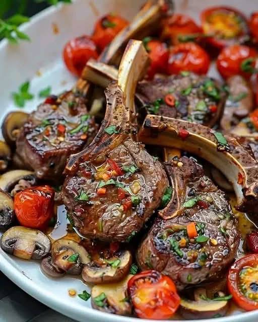 Côtelettes d’agneau grecques marinées aux champignons et aux tomates