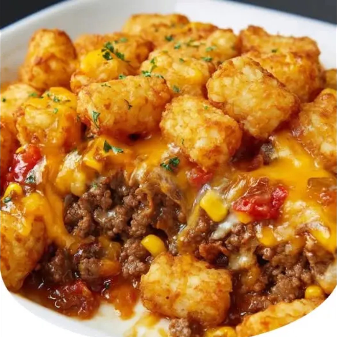 Crunchy golden tater tots atop a hearty, cheesy ground beef filling—pure comfort food ready to satisfy any craving.