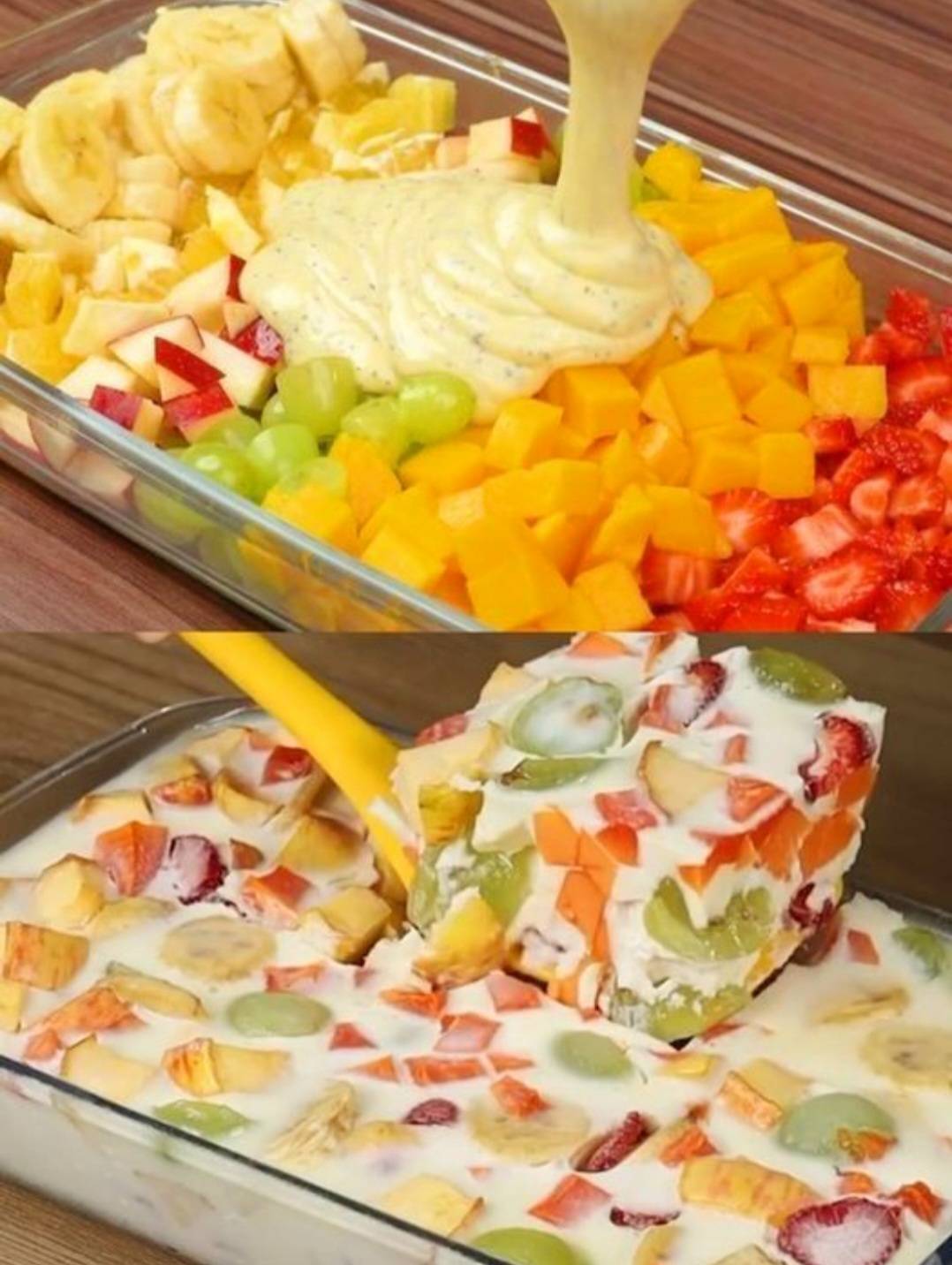 🧺 Ingrédients : ◾️1 banane, coupée en tranches ◾️1 pomme coupée en dés ◾️1 tasse de raisins (verts ou rouges), coupés en deux ◾️1 tasse de mangue, coupée en dés ◾️1 tasse de fraises, hachées ◾️½ tasse de lait concentré sucré ◾️½ tasse de crème (crème épaisse ou crème à fouetter) ◾️½ cuillère à café … Read more