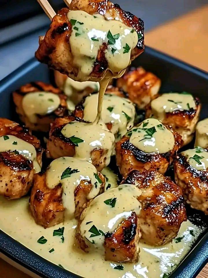 Grilled Chicken Bites with Creamy Garlic Sauce