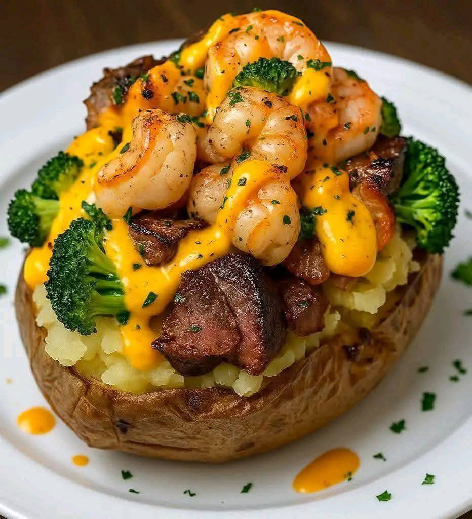 Ingredients 2 large russet potatoes 1/2 lb steak, cut into bite-sized cubes 8 large shrimp, peeled and deveined 1 cup broccoli florets, steamed 1 cup shredded cheddar cheese 1/4 cup heavy cream 1 tbsp butter 1 tbsp olive oil Salt & black pepper, to taste Fresh parsley, chopped (for garnish) Instructions Bake the Potatoes: Preheat … Read more
